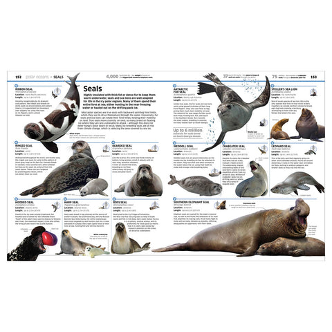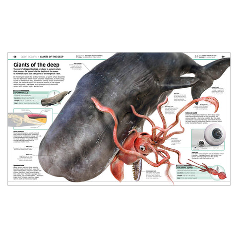 Using 3D illustrations and a level of detail you can't find in other books, this children's ocean encyclopedia is perfect for home learning and study support. It takes you on a world tour of the waters that cover 70 percent of our planet, taking in marine biology, geography, geology, and ecology. See the sharks, jellyfish, turtles, dolphins, octopuses, penguins, seahorses, and other animals that call the ocean home and learn how their anatomy and behaviour is adapted to deal with a watery habitat.