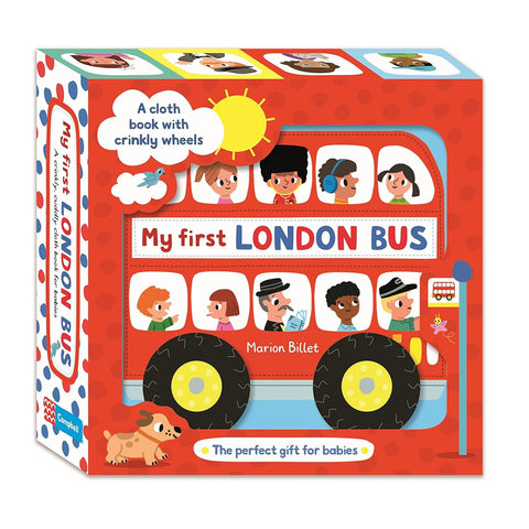 My First London Bus Cloth Book has bright, simple illustrations by Marion Billet and features a red London bus with tactile crinkly wheels on the cover. Beautifully presented in a gorgeous gift box, this book is perfect for small babies.