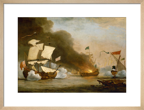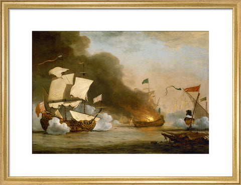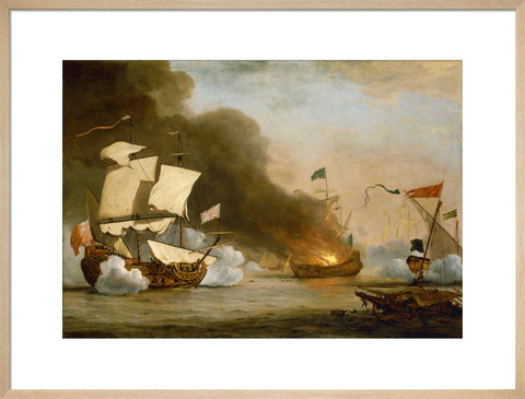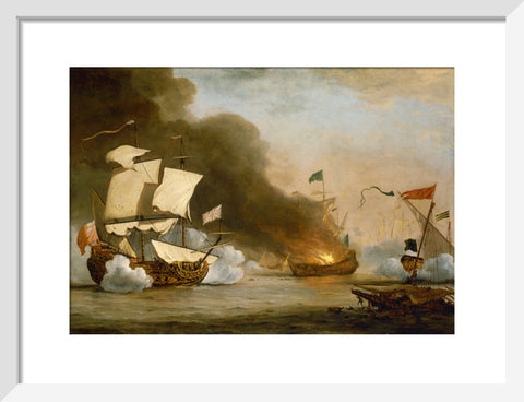 An English Ship in Action with Barbary Corsairs, circa 1680 (Custom Print)