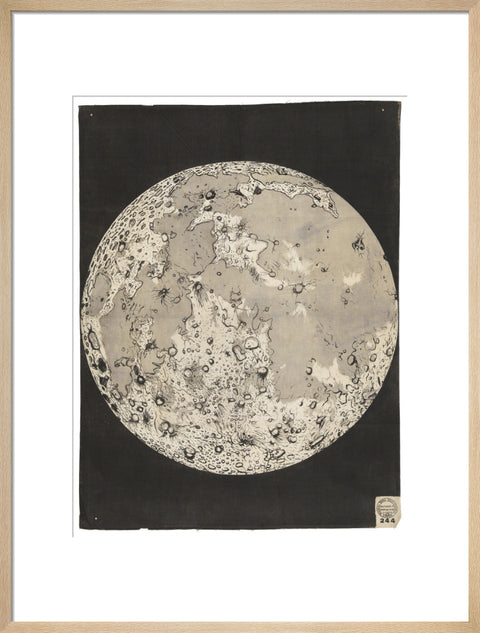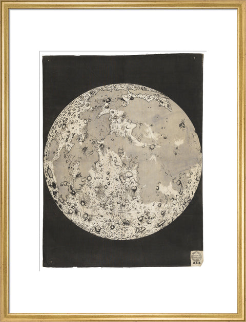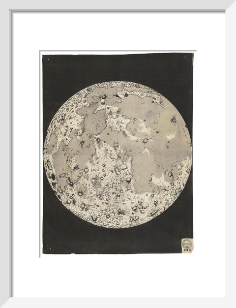 A print of one of nine wall hangings, all on astronomical themes, that were among many produced by the Working Men's Educational Union in the 1850s. They were printed lithographically on cotton, probably to avoid paper duty. The hangings would have been used in lectures, held at various locations, to illustrate the latest advances in knowledge. The Working Men's Educational Union (founded 1853) was a philanthropic society with the object of “the elevation of the working classes, as regards their physical, intellectual, moral, and religious condition”. Their chief means of achieving this was to encourage popular literary and scientific lectures “by preparing suitable Diagrams and other aids to lecturers” and to promote lending libraries and “mutual instruction classes”. This example shows the telescopic appearance of the moon.
