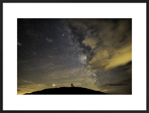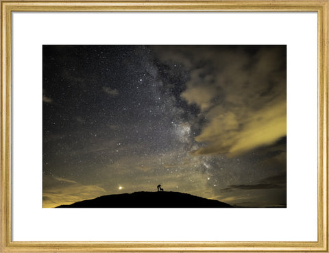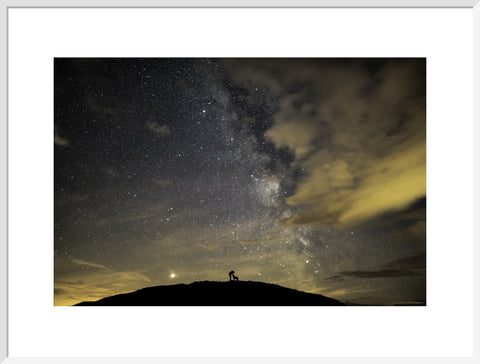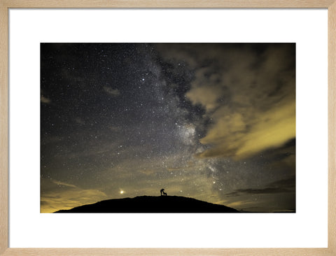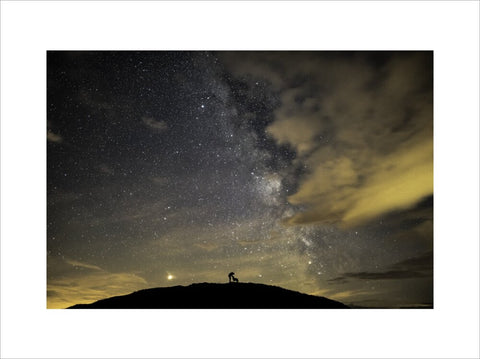 This is me and my dog, Floyd, flanked by Mars, Saturn and the galactic core of the Milky Way galaxy. For me, this photo encapsulates my love for the cosmos and my relationship with it and those around me. As my constant companions, I often try (and fail) to capture the dogs at night with me. With this shot I had to reduce the shutter speed to 10 seconds to allow me to keep Floyd still. To counter this, I increased the ISO and whispered ‘don’t move, don’t move, don’t move’ to Floyd for the whole 10 seconds. This is a shot I had to repeat a number of times to get a non-blurred silhouette but finally we both managed to stay still enough to capture this single exposure shot. This is a photograph I am very proud of. It contains everything I love about photography; my relationship with the landscape and my family, dogs and friends. It also captures the majesty of the cosmos and our tiny place within it. Ben Bush