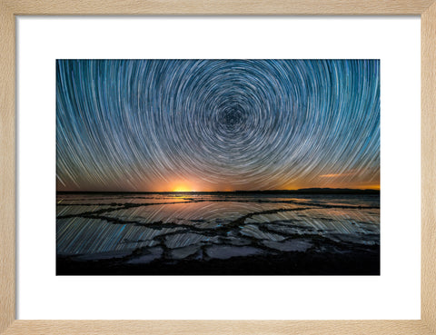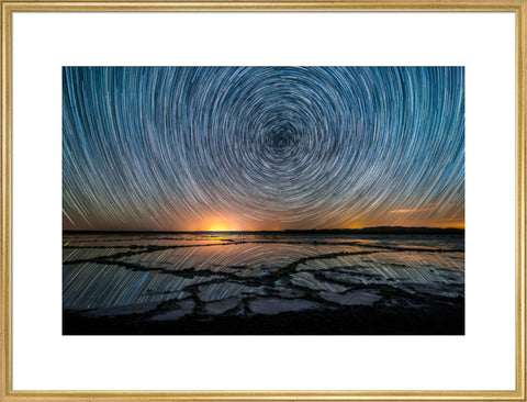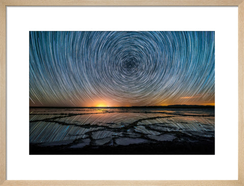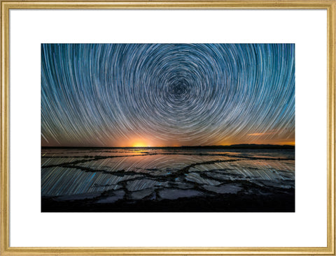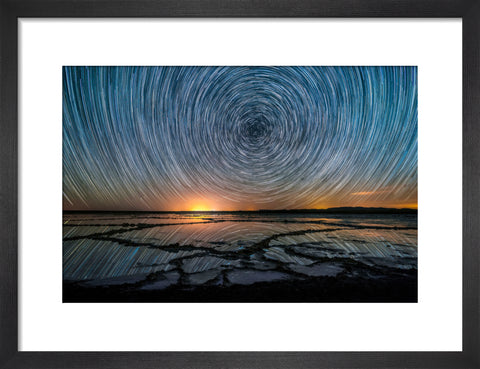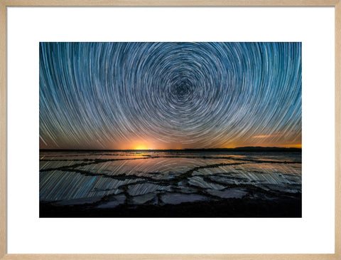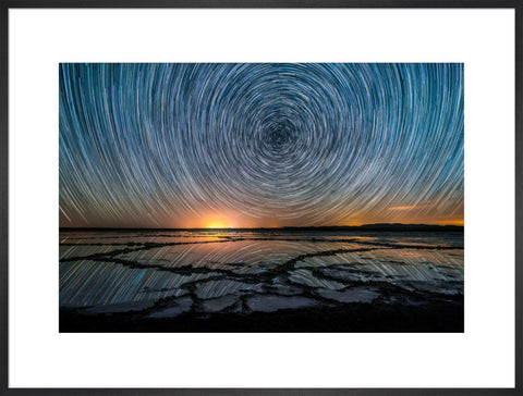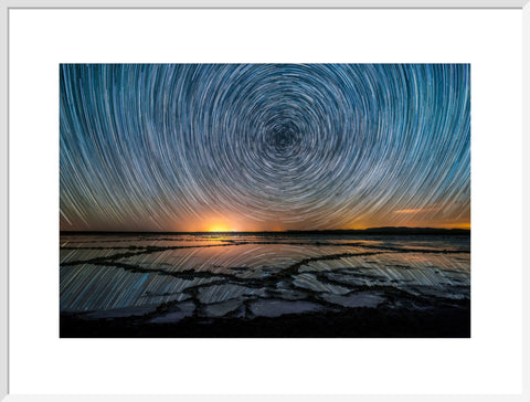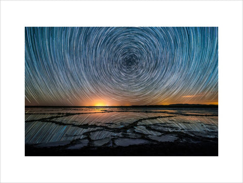 As a result of the springtime rains, there is a seasonal lake that appears in the Shahr-e Babak county called Mokhrageh. When the waters became quiet and still, the lake transformed into a natural mirror. In some parts there are salt streaks coming out of the water that create a beautiful scene, recording the magnificent beauty of nature. This image shows the movement of the stars during the night-time over this natural mirror with the with the North Star Polaris in the centre of the movement. This natural mirror looks like it is broken. Seyed Mohammad Mousavi Nadoosan