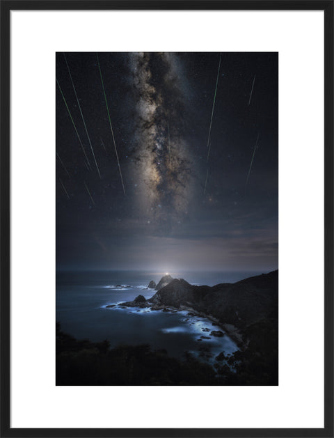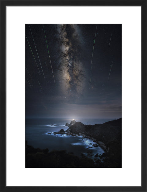 Meteor Shower Over the Lighthouse (2024 Custom Print)