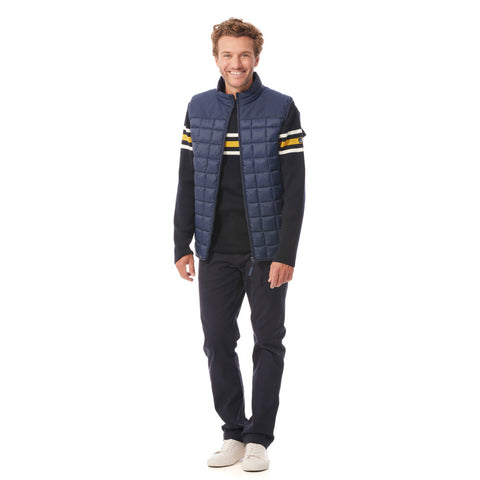 A little nautical nod with the smock-like canvas yokes on the shoulders gives this gilet a unique touch.